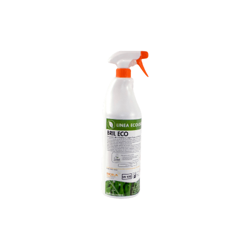 Multiusos limpiacristales línea ecolabel. Bril ECO se recomienda para la limpieza de cristales y todo tipo de superficies esmaltadas o vitrificadas. También puede utilizarse como multiusos para la limpieza diversas superficies como: mármol, silestone, fórmica, cuero…., etc.